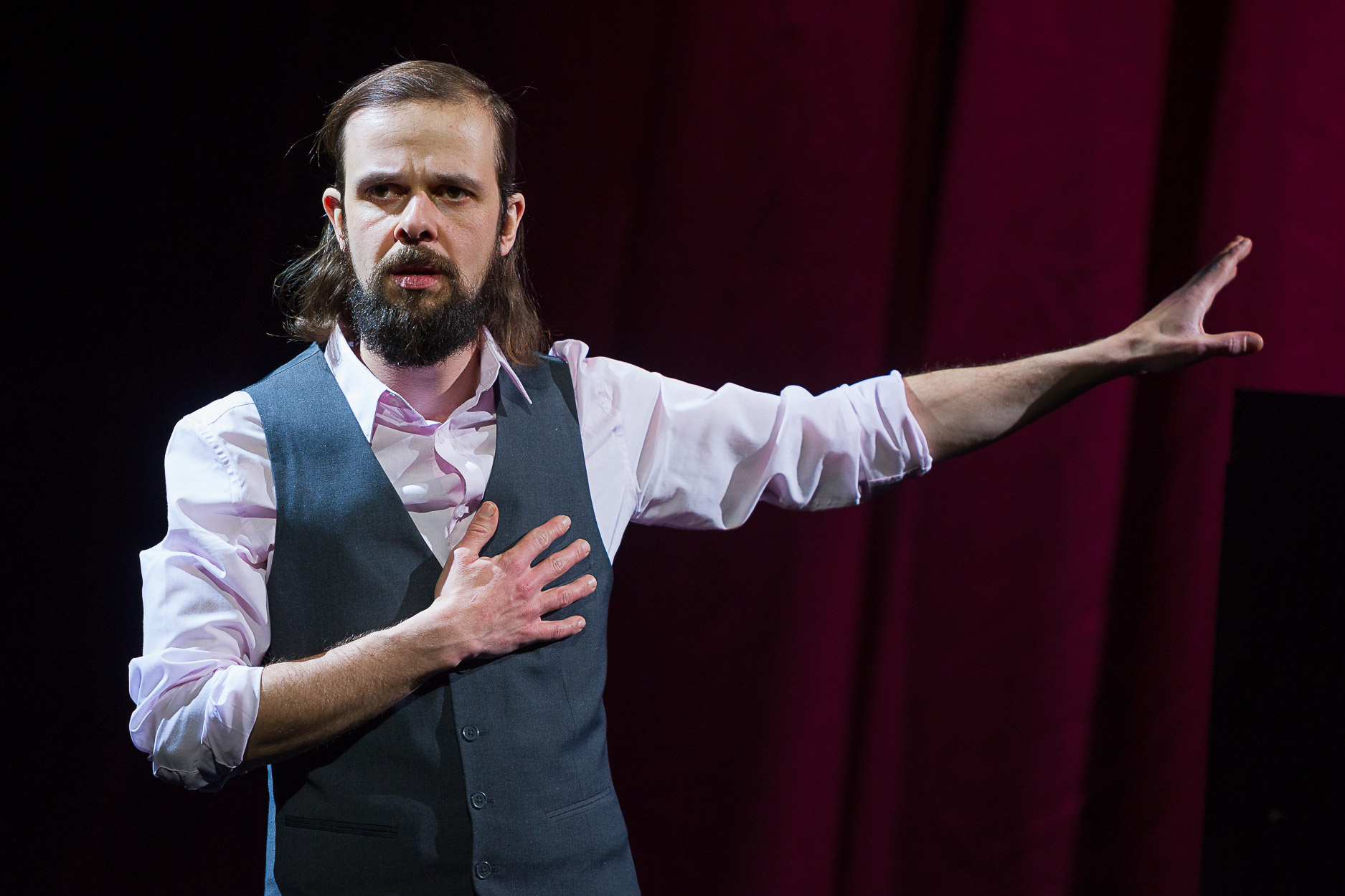 "Eine knappe Stunde lang darf das Publikum Schauspieler Nik Mayr dabei zusehen, wie er ein minimalistisches, pyramidenartiges Bühnenbild, an dessen Spitze ein Rednerpult thront, beschreitet und dabei eine große, schwere Frage stellt: Wer Schuld daran trägt, dass auch heute Menschen sterben, weil sie einer ,falschen' Religion angehören. Sind es Waffen? Ist es das System? Der Leviathan? Der Demagoge? Oder sind es die Menschen"