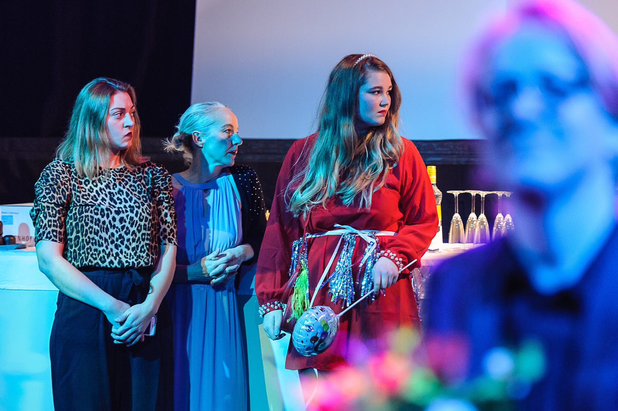 „Um höchst aktuelle, existenzielle Fragen des Menschseins … geht es in Anton Tschechows ‚Drei Schwestern‘ am Theater Wasserburg. … Die Inszenierung ist ein Strudel aus Pop-Party-Ästhetik, hohen Schuhen und glitzernder Jugendkultur und konzentriert sich auf einen sehr zeitlosen Konflikt: Was ist Glück? Und warum ist es so verdammt schwer es zu finden? Gerade in einer Zeit, in der existenzielle Probleme wie Krieg und Hunger bewältig sind. Also zumindest für einen Großteil der Menschen, für eine gut situierte Gesellschaft aus Selbstoptimierern. (…) Und sie alle reden immerzu aneinander vorbei, reden sich um potenzielles Handeln herum.“