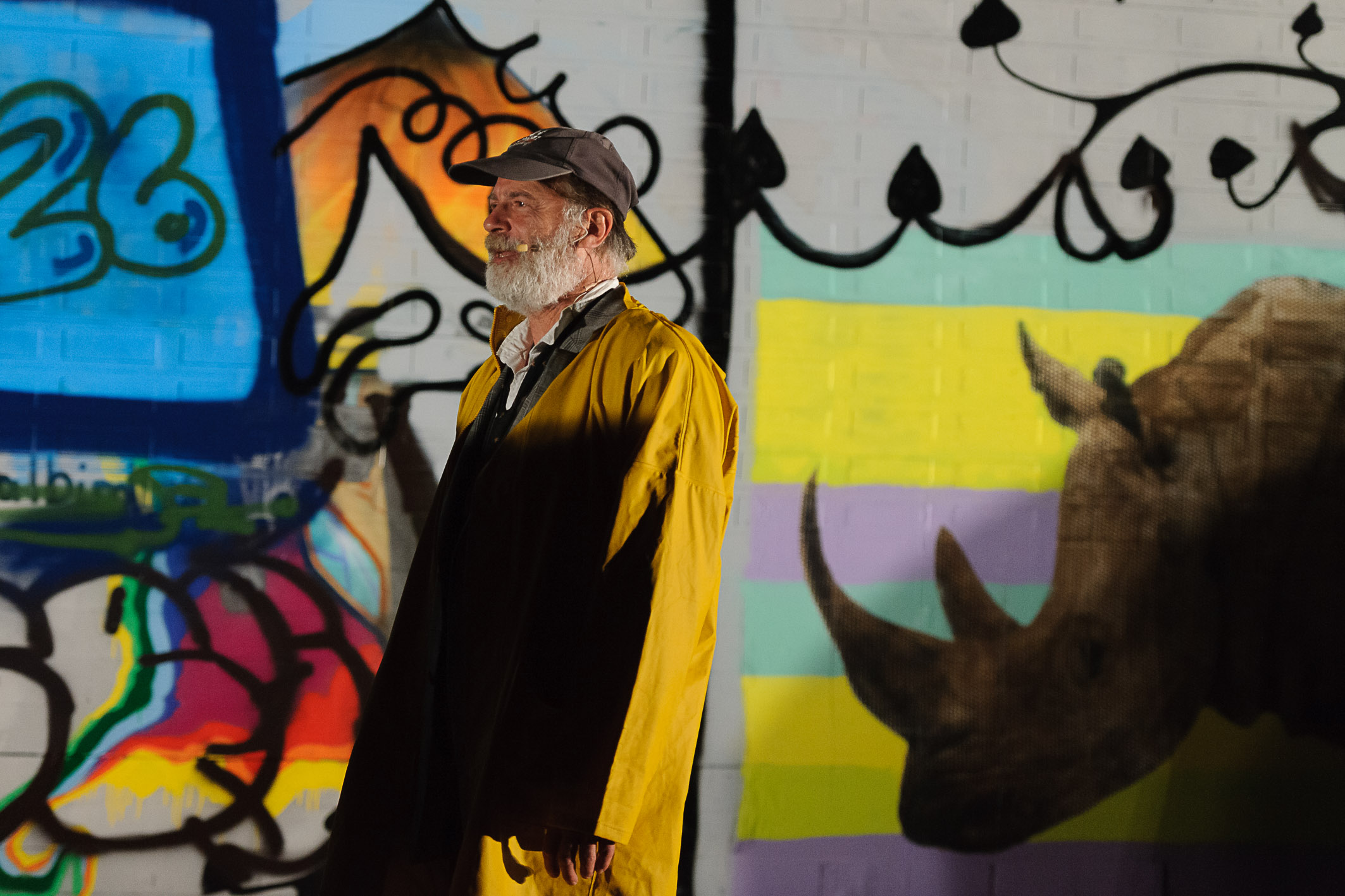 Wer herausfinden wollte, was nun tatsächlich passiert ist und wie darüber mit größtmöglicher Logik und fundiertester Sachlichkeit philosophiert worden ist, konnte zum Theater im Rhinodrom auf dem Gelände der alten Essigfabrik im Holzhofweg in Wasserburg kommen: Die Nashörner von Eugène Ionesco wurden dort im Juli 2021 für zwei Wochenenden als Schauspiel mit Musik aufgeführt.
