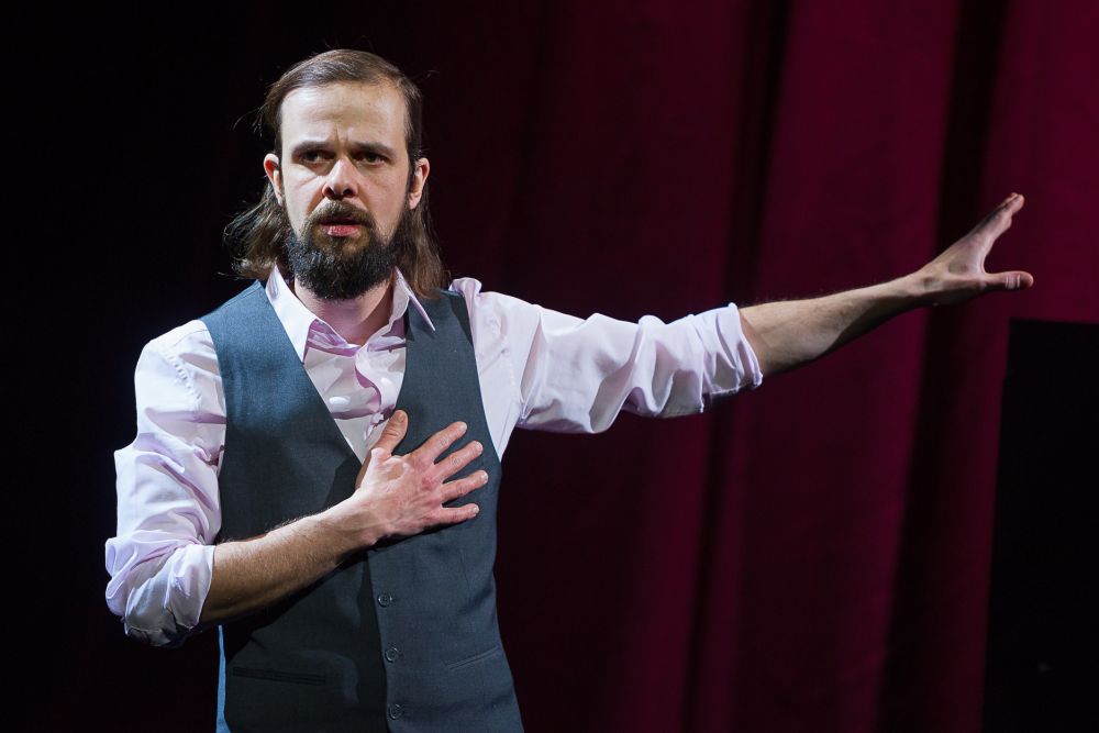 "Eine knappe Stunde lang darf das Publikum Schauspieler Nik Mayr dabei zusehen, wie er ein minimalistisches, pyramidenartiges Bühnenbild, an dessen Spitze ein Rednerpult thront, beschreitet und dabei eine große, schwere Frage stellt: Wer Schuld daran trägt, dass auch heute Menschen sterben, weil sie einer ,falschen' Religion angehören. Sind es Waffen? Ist es das System? Der Leviathan? Der Demagoge? Oder sind es die Menschen"